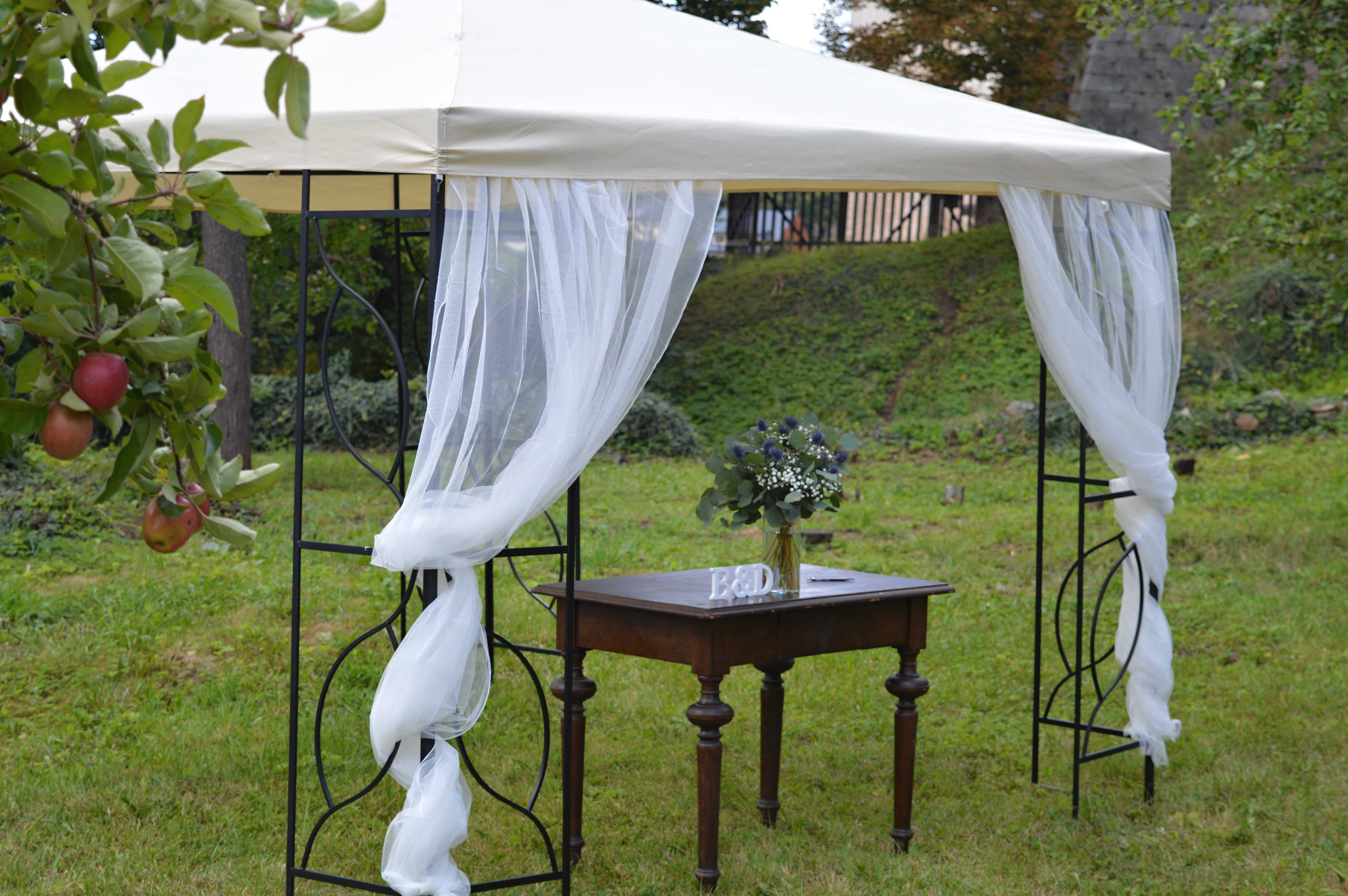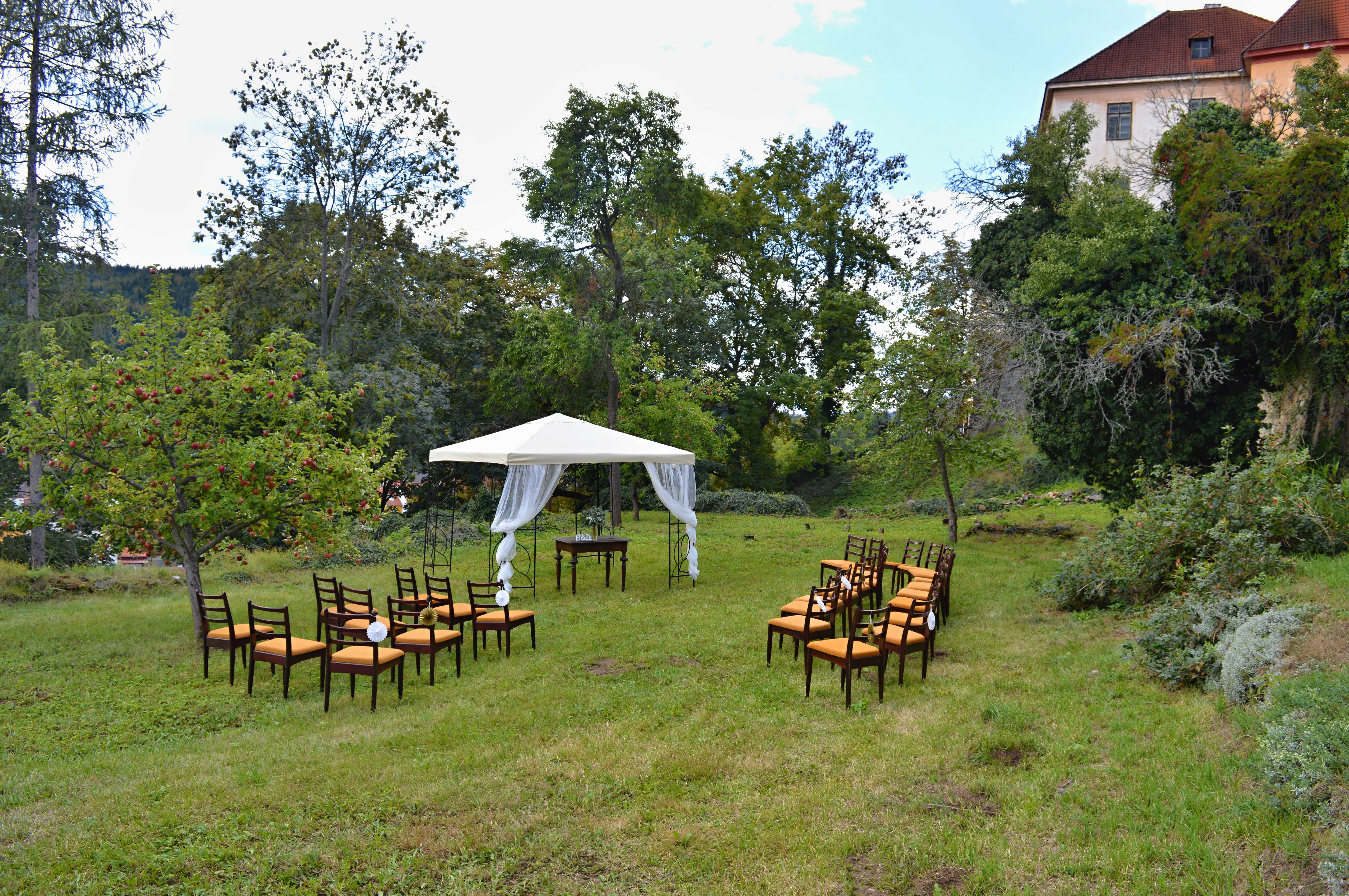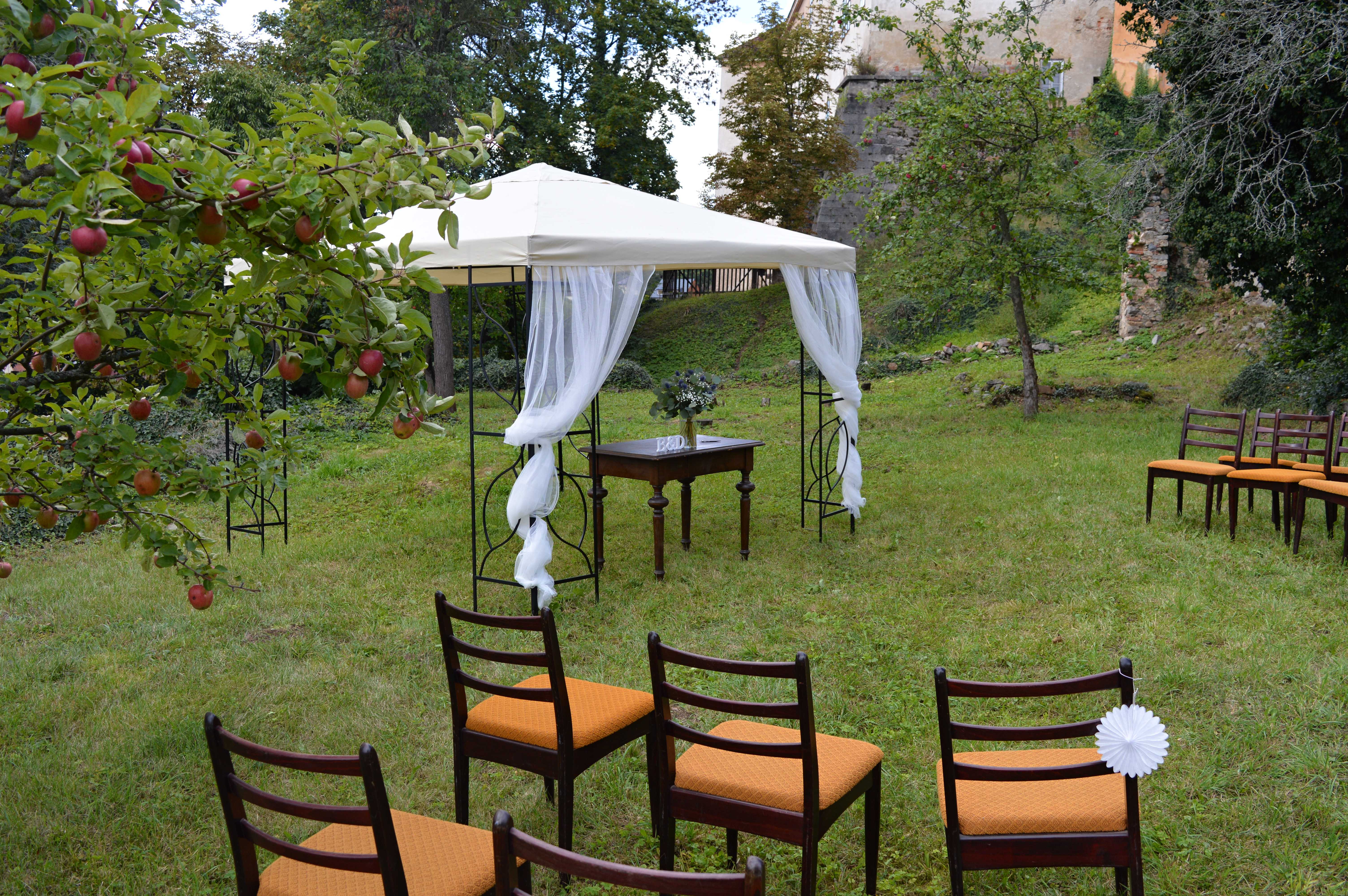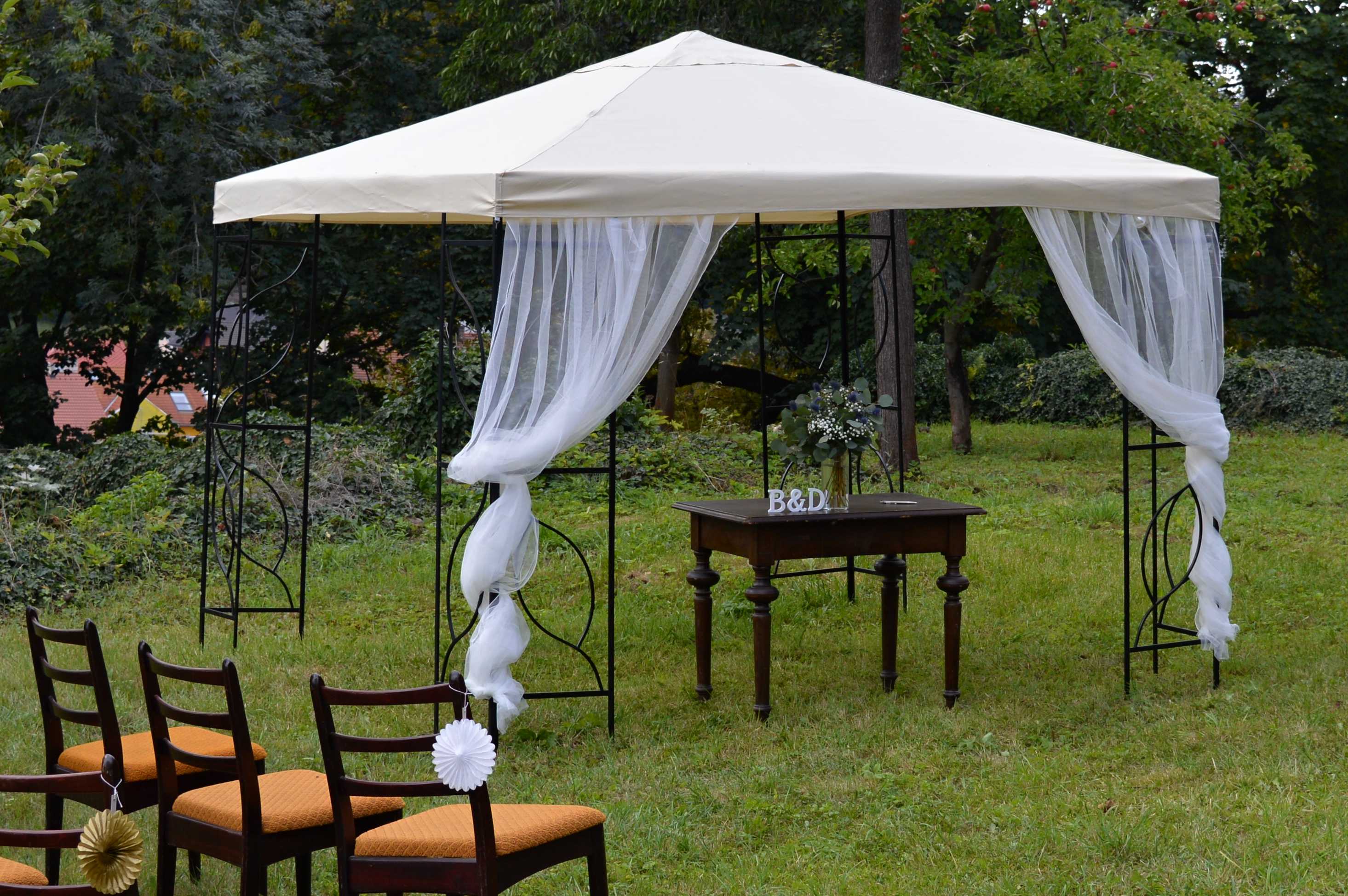 V případě, že zvolíte svatbu v zahradě, můžeme Vám zdarma zapůjčit zahradní altán (3x3 metry).